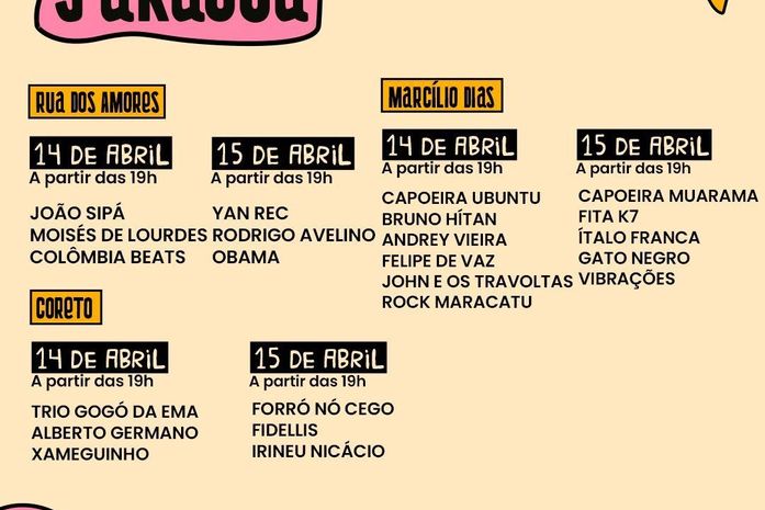 Além dos shows musicais, o evento também contará com feiras livres de arte, apresentações de grupos culturais, artistas circenses, djs, programação infantil e muito mais.