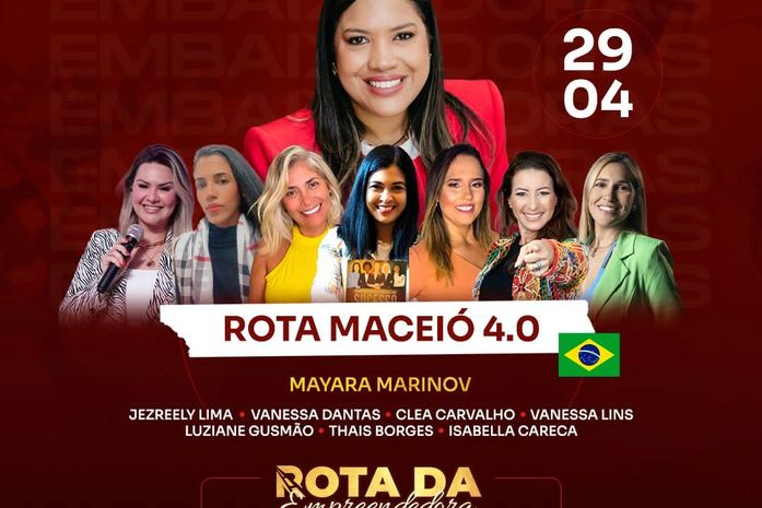 Realizado pela DTL GROUP PT, empresa que comanda a partir de Portugal, o evento é uma imersão internacional voltado para o fortalecimento do empreendedorismo feminino. A Rota da Empreendedora já acontece nos Estados Unidos, Dubai, Portugal entre outros países da Europa. A meta deste ano é expandir a atuação para o Japão e Angola. Antes, Mayara Marinov e sua equipe aportarão no Brasil, em abril. Neste mês de abril, a imersão já aconteceu em Salvador. Neste sábado, é a vez da quarta edição de Maceió. “A Rota é para todas as mulheres que já são donas do seu negócio ou sonham em tê-lo, que ousam viver seus sonhos e ser CEOs das próprias vidas, que não desistem até alcançar seus propósitos, com liberdade financeira e de tempo”.