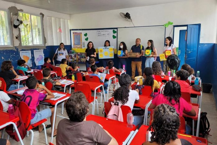 Durante o teste, as crianças experimentaram o alimento e depois participaram de um jogo para determinar se o sabor do bolo de massa puba estava agradável. Os alunos avaliaram a receita ao mostrar fichas com carinhas da escala hedônica que vão do “Odiei” até o “Adorei”.