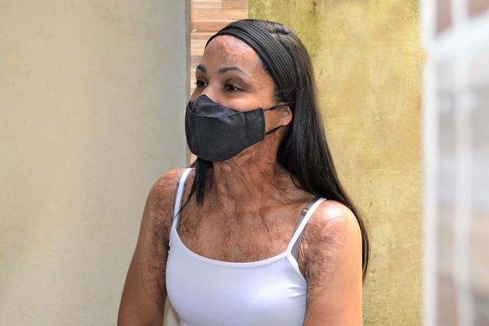 O ano foi 2013, mas Manuela Herculano Tenório, de 38 anos, lembra com detalhes de tudo que aconteceu. Ela teve 70% do corpo queimado após um acidente doméstico na casa dela.