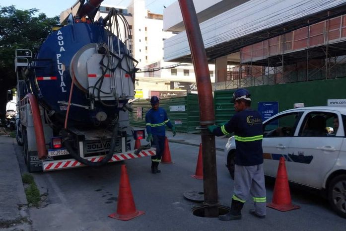 Ainda segundo a Semurb, borra de cimento estava sendo despejada diretamente na rede de drenagem, quando a empresa lavava o caminhão da betoneira, que realiza a concretagem.