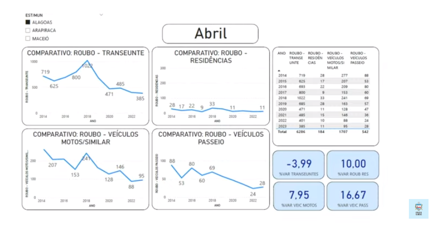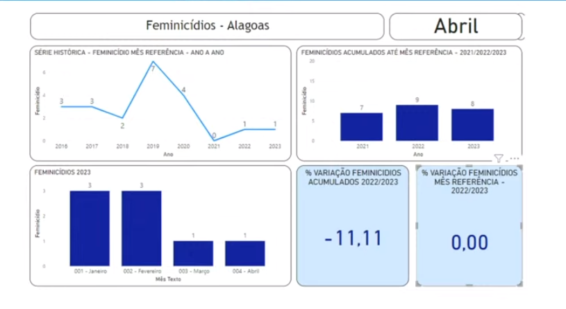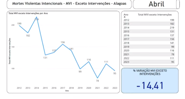 Conforme apresentou o delegado José Carlos, em abril do ano passado, Alagoas registrou 111 mortes. Em abril de 2023, foram 95 homicídios, sendo um feminicídio.