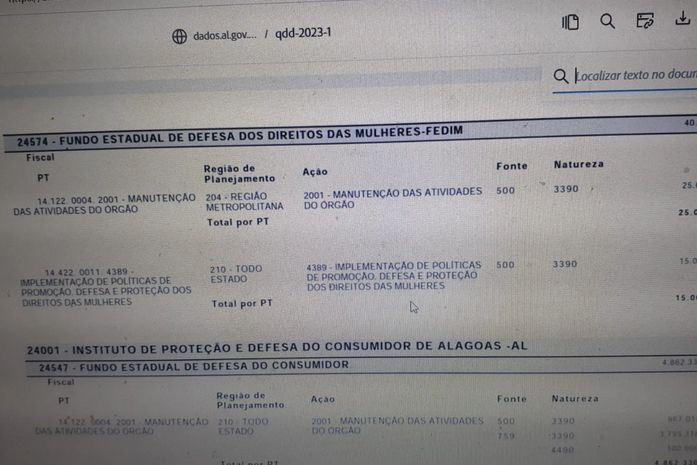 Garantia de direitos pode evitar o feminicídio, mas, em Alagoas, qual o órgão que garante esse direito, se , segundo, o Quadro de Detalhamento da Despesa (QDD), do governo do estado de Alagoas, o FEDIM criado para esse fim tem parcos 15 mil reais para abarcar a garantia de direitos de mulheres do estado todinho.