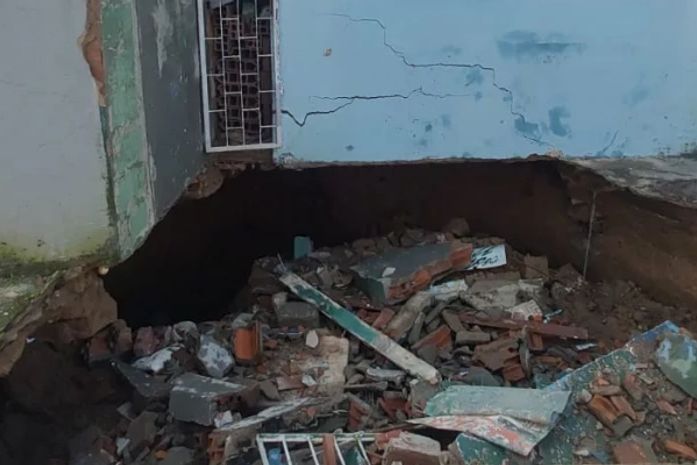 Ainda segundo o órgão, o processo de erosão iniciou em duas casas, após uma fossa ou cacimba ceder. Um dos imóveis foi interditado totalmente e a outra de forma parcial. Outras duas casas, que ficam do outro lado da rua também devem serão interditadas, pois estão com a estrutura danificada.