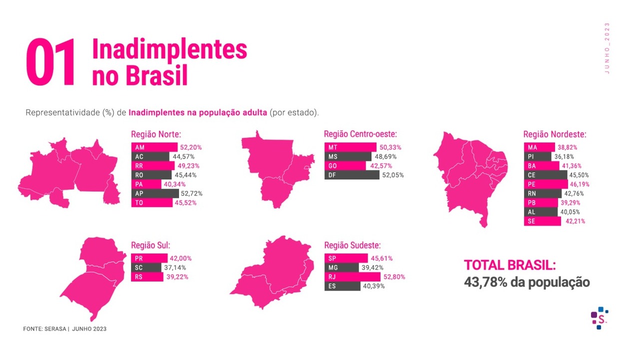 No cenário nacional, o número de inadimplentes também registrou uma diminuição, passando de 71,9 milhões para 71,45 milhões.