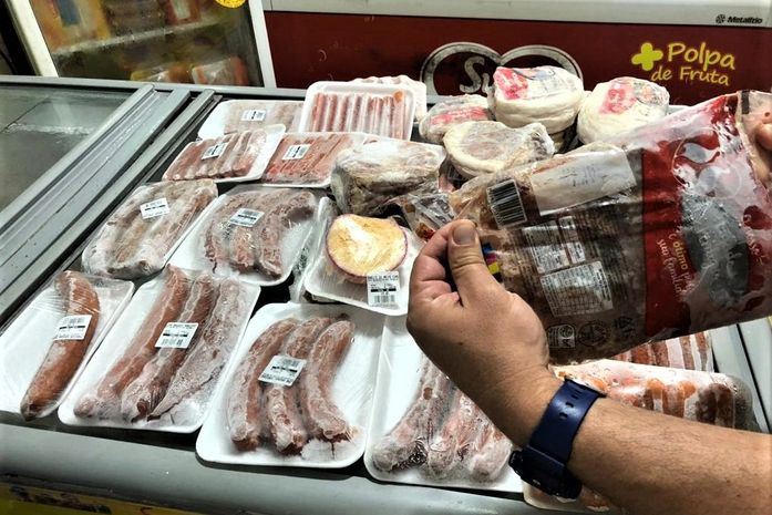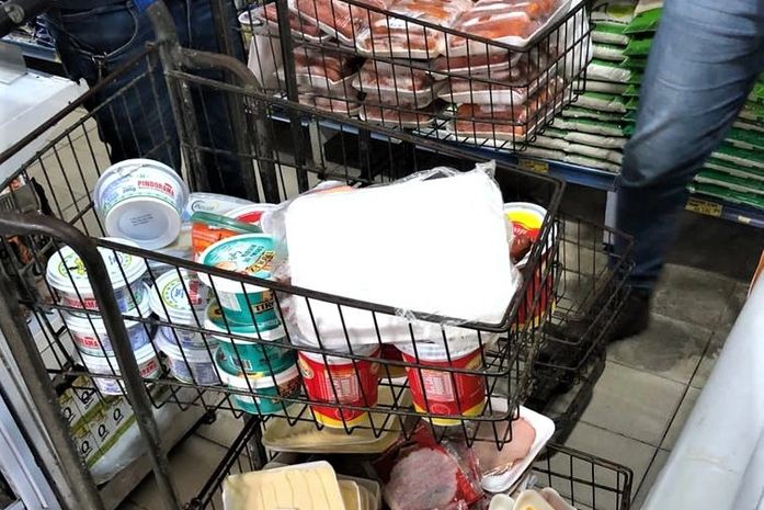No local, foram apreendidos 300 kg de produtos, perecíveis e não perecíveis, estragados e com prazo de validade expirado. Entre os itens apreendidos estão salsicha, linguiça, bacon, mortadela, queijo, produtos de limpeza, entre outros.