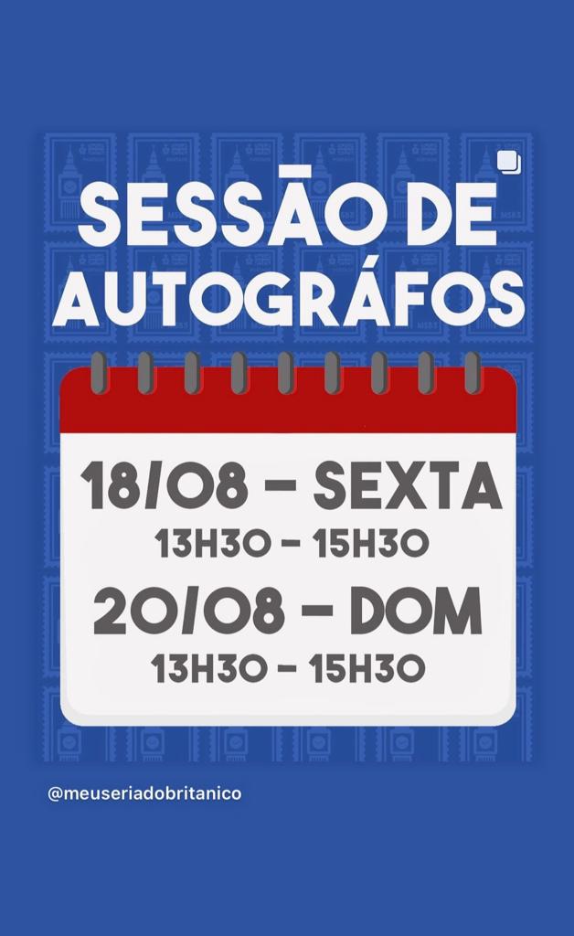 Sessões de autógrafo - 18/08 e 20/08, das 13h30 às 15h30