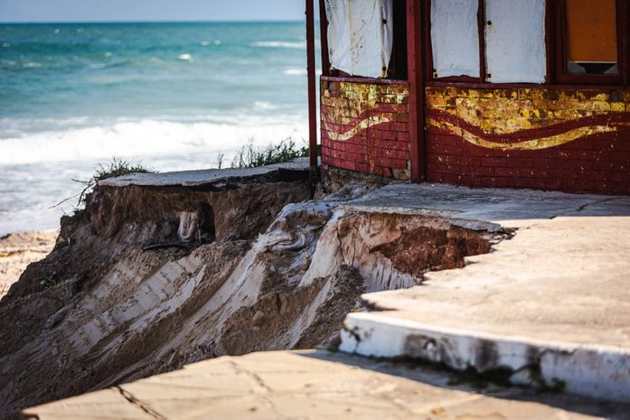 A Defesa Civil interditou, na tarde desta terça-feira (29), uma barraca na praia do Sobral por apresentar comprometimento da estrutura, decorrente do avanço do mar.