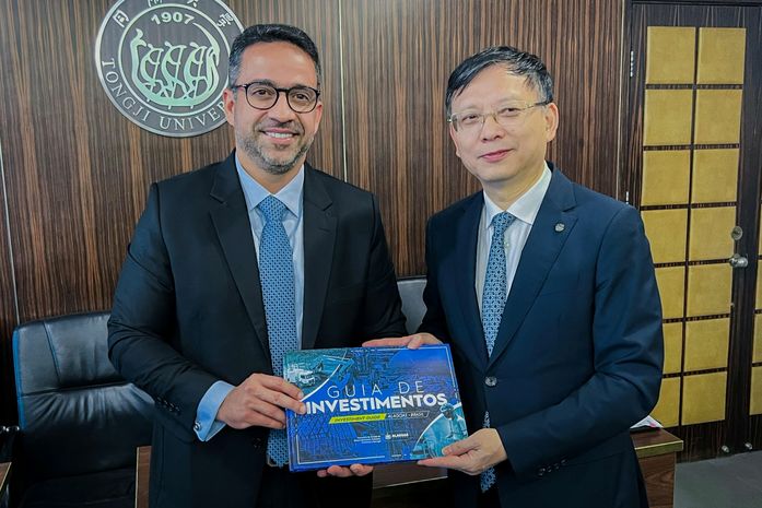 No terceiro dia de agenda oficial do Governo de Alagoas na China, o governador Paulo Dantas se reuniu com os diretores da Universidade Tongji e avançou nas tratativas de cooperação técnica entre as universidades estaduais e uma das principais universidades chinesas. Na reunião desta quarta-feira (06), a comitiva discutiu caminhos para intercâmbio e desenvolvimento de projetos nas áreas de planejamento urbano e mobilidade da região metropolitana de Maceió, de ciência e tecnologia, de turismo sustentável e de futebol.