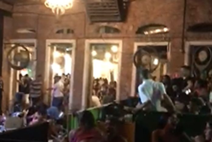 Em vídeos que circulam pelas redes sociais é possível ver o desespero dos clientes tentando sair do estabelecimento.