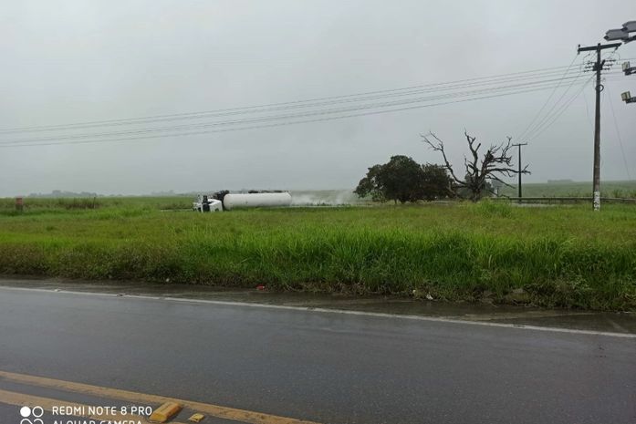 Um tombamento de caminhão tanque carregado de oxigênio líquido foi registrado na manhã desta terça-feira (12), nas proximidades do entroncamento da BR-424 com a BR-316, em Satuba.
