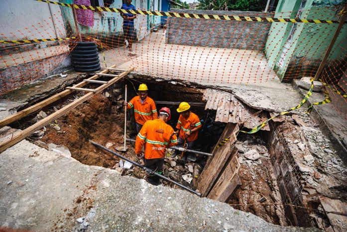 A Secretaria Municipal de Infraestrutura (Seminfra) iniciou os serviços de recuperação de uma laje que desabou na Grota do Senhor do Bonfim, localizada no bairro da Chã da Jaqueira.