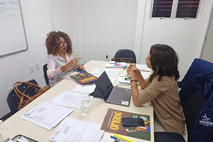 Estivemos, na manhã da quinta-feira, 19, n'uma agrabilissima e produtiva conversa com Bruna Monteiro, assessora executiva da Secretaria Municipal de Saúde de Maceió e a pauta principal foi a apresentação do Programa Nacional de Equidade de Gênero, Raça e Valorização das Trabalhadoras no SUS.