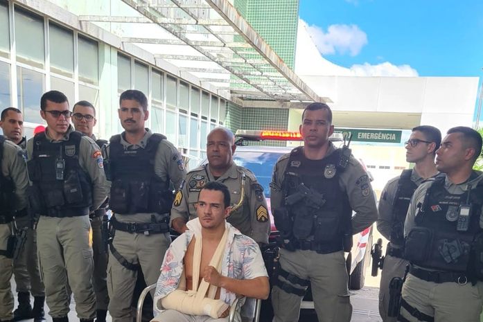 O Policial Militar, Gheymison Nascimento Porto, recebeu alta do Hospital de Emergência do Agreste, em Arapiraca, nesta segunda-feira (23). Emocionado, Porto foi homenageado por colegas de farda, amigos e familiares na saída da unidade hospitalar. No vídeo divulgado, policiais aplaudem ele e um deles toca uma música com um instrumento.