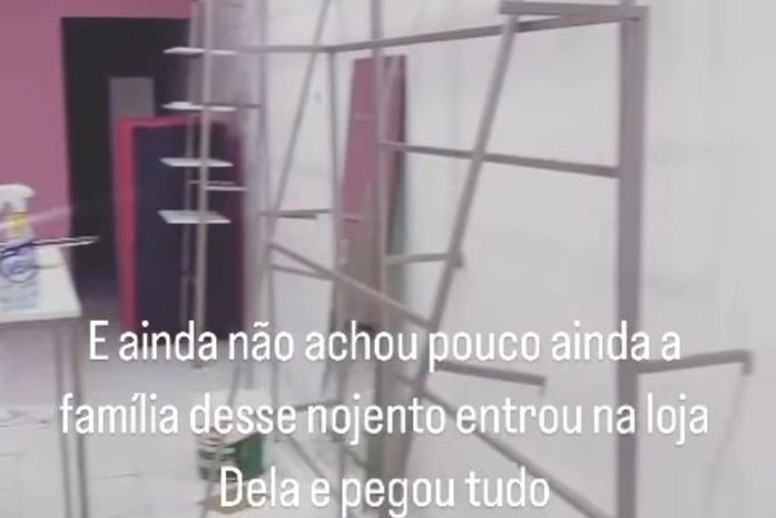 Através de postagem nas redes sociais, os familiares de Carla Janiere compartilharam imagens da loja esvaziada e mostram cabideiros sem as roupas e as prateleiras sem produtos.