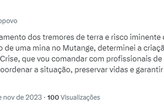Em um texto publicado no antigo Twitter, o prefeito informou que irá comandar o Gabinete, juntamente com profissionais de diferentes áreas, “para coordenar a situação, preservar vidas e garantir a segurança de todos.”.