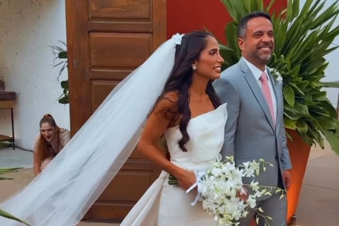 Deslumbrante em um vestido clássico e elegante, a noiva foi conduzida ao altar pelo seu pai, o governador Paulo Dantas. A cerimônia que teve o pôr do sol como “convidado”, iniciou há poucos instantes e seguirá noite adentro com convidados pra lá de renomados.