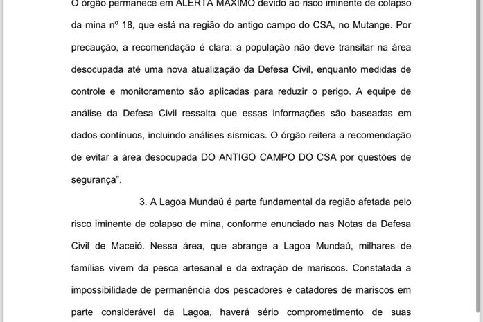 Ele destaca ainda, que já solicitou há mais de dois meses, através da Comissão, que a Polícia Federal conclua o inquérito correspondente ao afundamento do solo que afetou mais de 60 mil maceioenses, e assim, a empresa e os envolvidos possam responder criminalmente por essa ação devastadora que se prolonga há décadas.