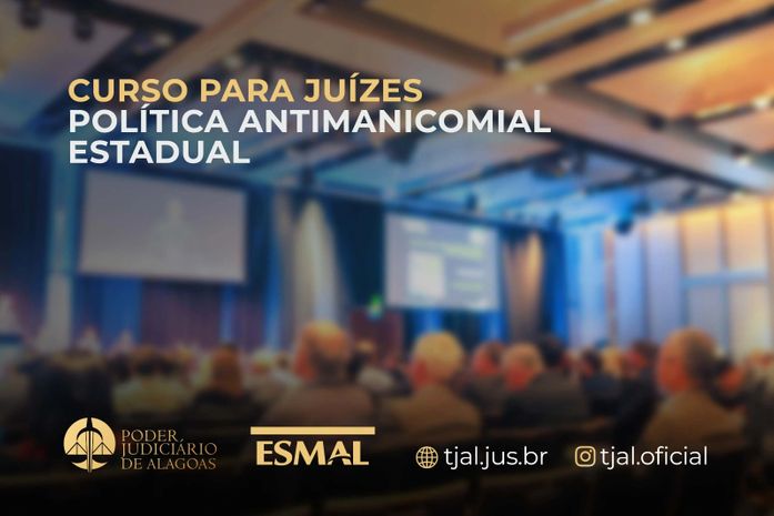 Terá início nesta quinta-feira (14), o curso “A política antimanicomial estadual do Tribunal de Justiça de Alagoas de acordo com a Resolução nº 487/03 do Conselho Nacional de Justiça (CNJ)\". A capacitação destinada aos magistrados finaliza o semestre letivo da Escola Superior da Magistratura de Alagoas (Esmal).