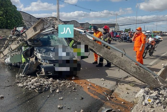 Com o impacto, o poste caiu no carro e o funcionário da empresa apresentou escoriações no rosto e braço. Ele foi socorrido até o Hospital de Emergência do Agreste.