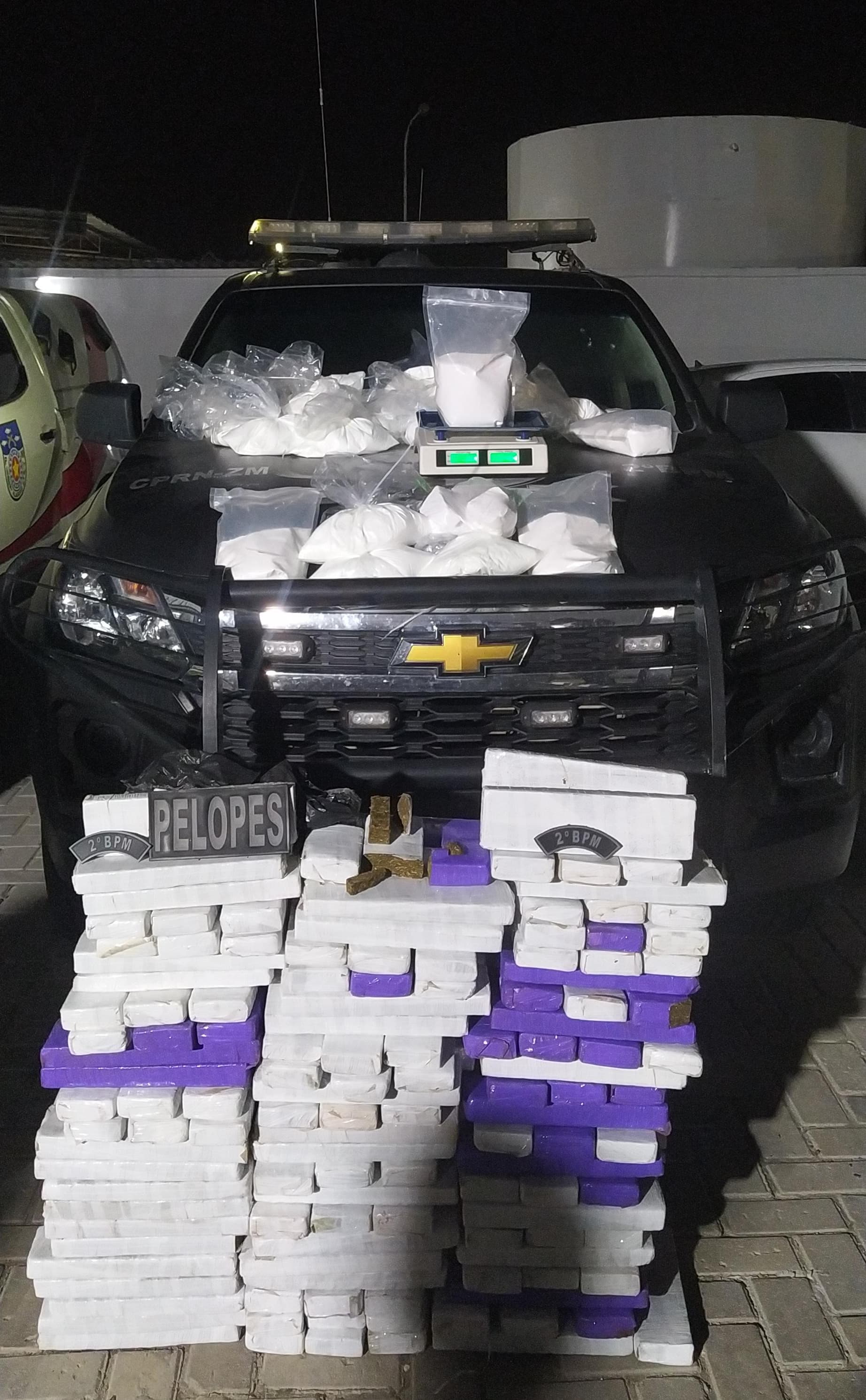 Uma dupla foi presa e cerca de 160kg de drogas foram apreendidas após uma ação integrada da Polícia Militar, na noite desta quinta (04), no bairro Benedito Bentes, em Maceió. Do total de entorpecentes apreendidos, 125 kg eram de maconha e 33,6 kg de cocaína.