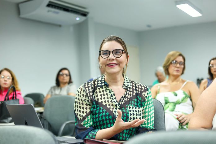 A secretária de Educação, Jó Pereira, a secretária-adjunta, professora Noêmia Barroso, a subsecretária de Gestão Pedagógica, Maria Vilma, e a superintendente de Governança, Marcelle Telles, marcaram presença no encontro formativo, além de coordenadores e técnicos da Semed.