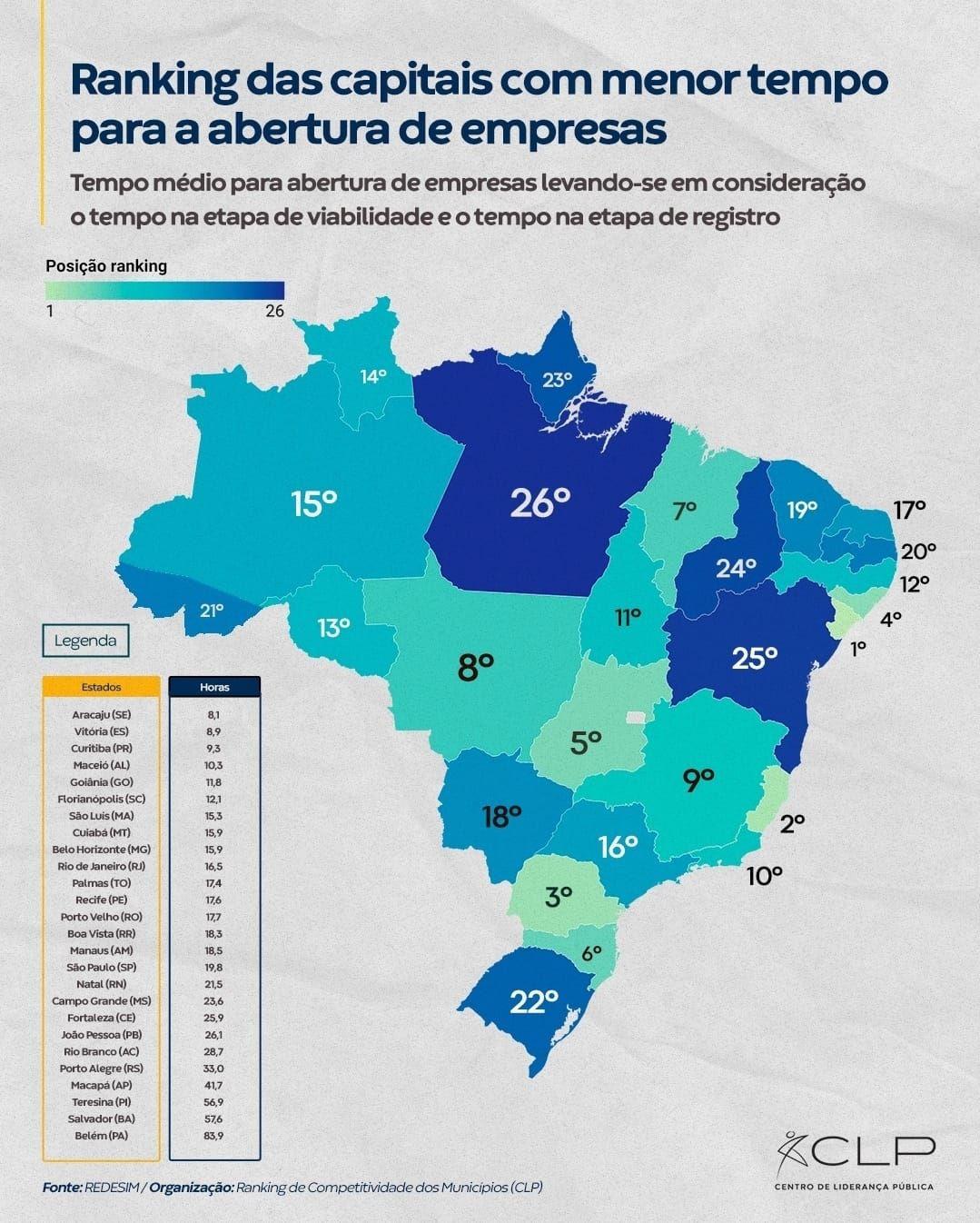 O indicador do Ranking de Competitividade dos Municípios considerou o tempo médio para a abertura de empresas levando-se em consideração o tempo na etapa de viabilidade e o tempo na etapa de registro em todos os estados brasileiros, divulgado recentemente pela Rede Nacional para a Simplificação do Registro e da Legalização de Empresas e Negócios (Redesim), do Governo Federal.
