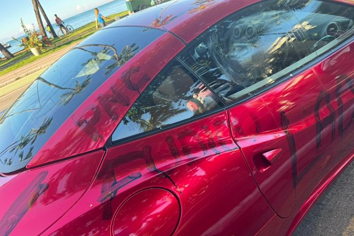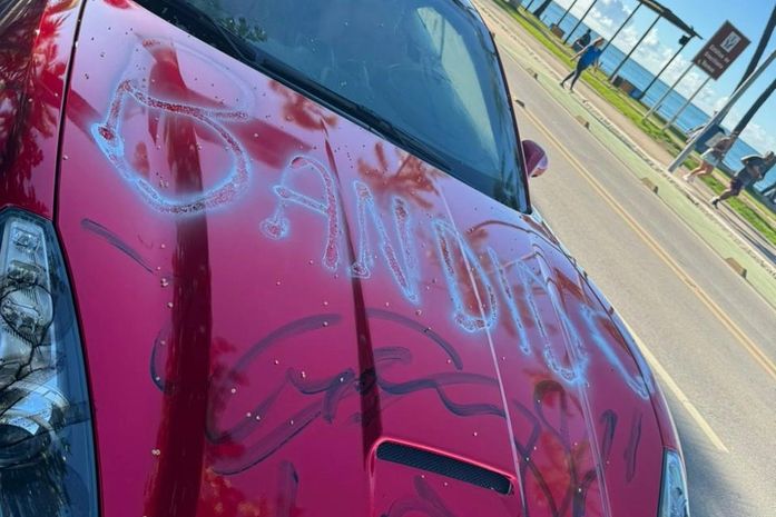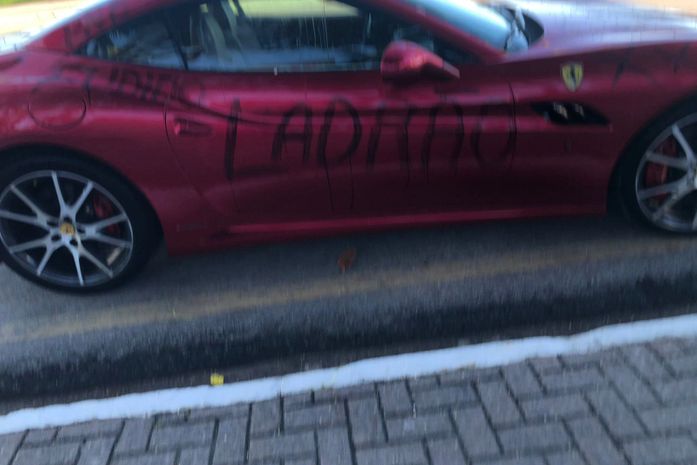 Quem passou pela orla de Maceió na manhã desta sexta-feira (1º) foi surpreendido ao ver uma Ferrari vandalizada, com as palavras ‘corrupto’ e ‘ladrão’. O veículo foi retirado do local por um guincho do Departamento Municipal de Transporte e Trânsito (DMTT).