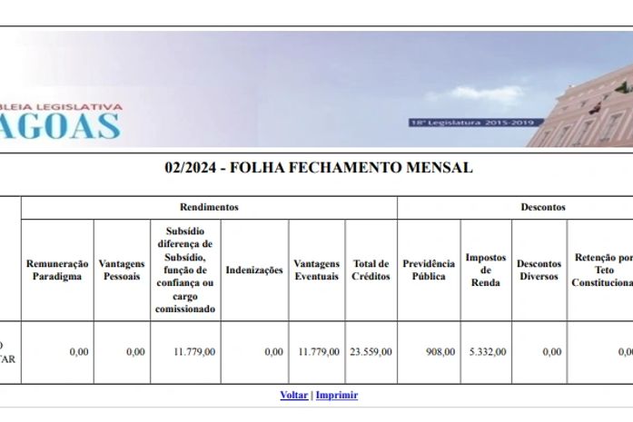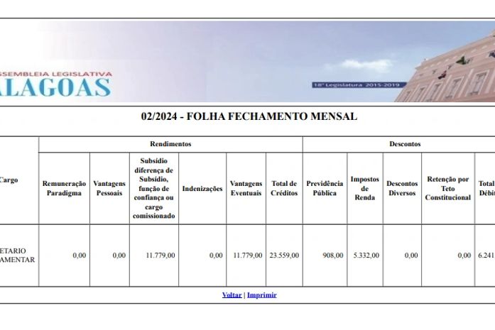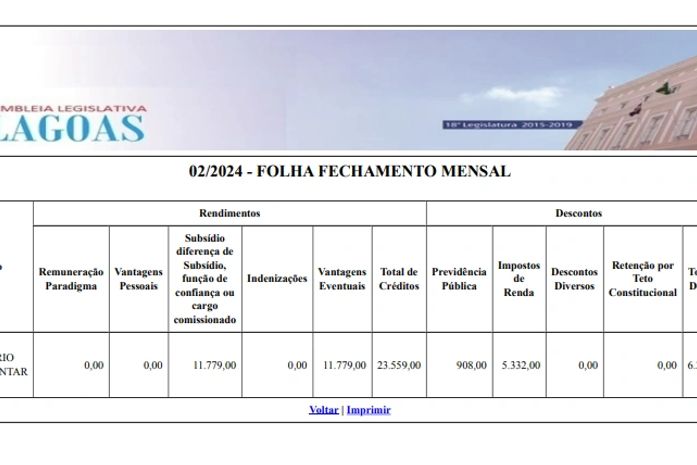 Este é o valor que o motorista particular do ex-deputado alagoano Jairzinho Lira recebe, como funcionário público, no cargo de secretário parlamentar, na Assembleia Legislativa de Alagoas, onde ganha R$ 15.875, 00 por mês.