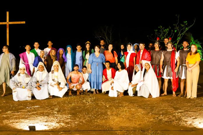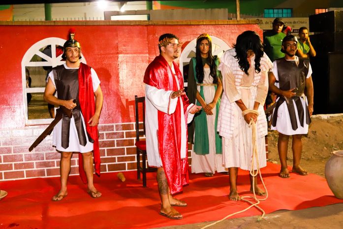 Realizado pela Prefeitura de Lagoa da Canoa, através da Secretaria Municipal de Cultura, a encenação contou com a parceria da companhia local de Teatro Servos de Cristo e reuniu um elenco aproximado de 40 pessoas entre atores, atrizes e pessoal de apoio.