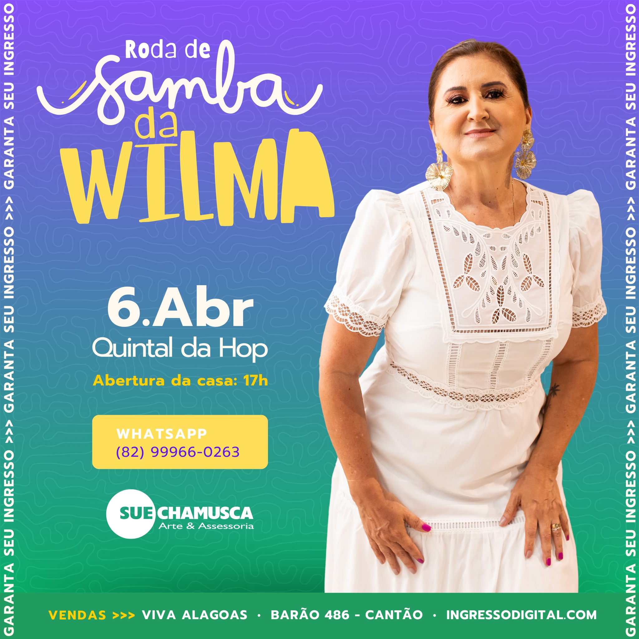 Você também pode curtir ao som da Rosa de Samba da Wilma. O show vai ser lá no Quintal da Hop, a partir das 5 horas da tarde.