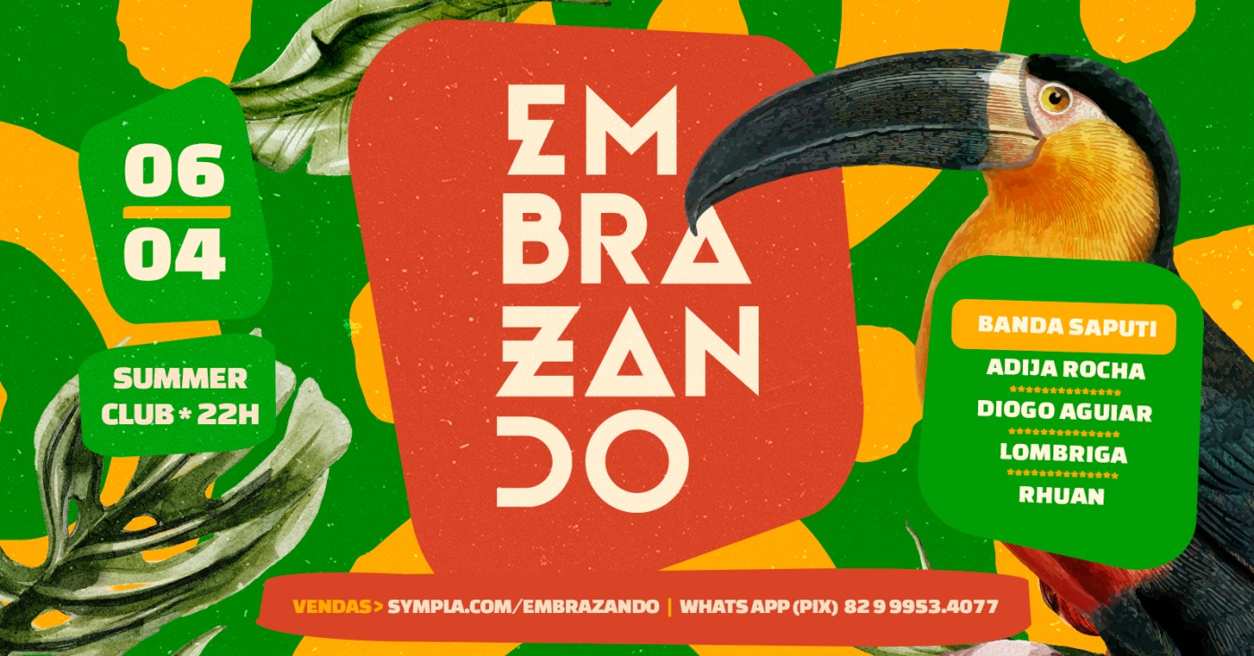 Ainda neste sábado (05), você pode acompanhar a segunda edição da festa Embrazando. O evento acontece a partir das 22h, no Summer Beach Club.