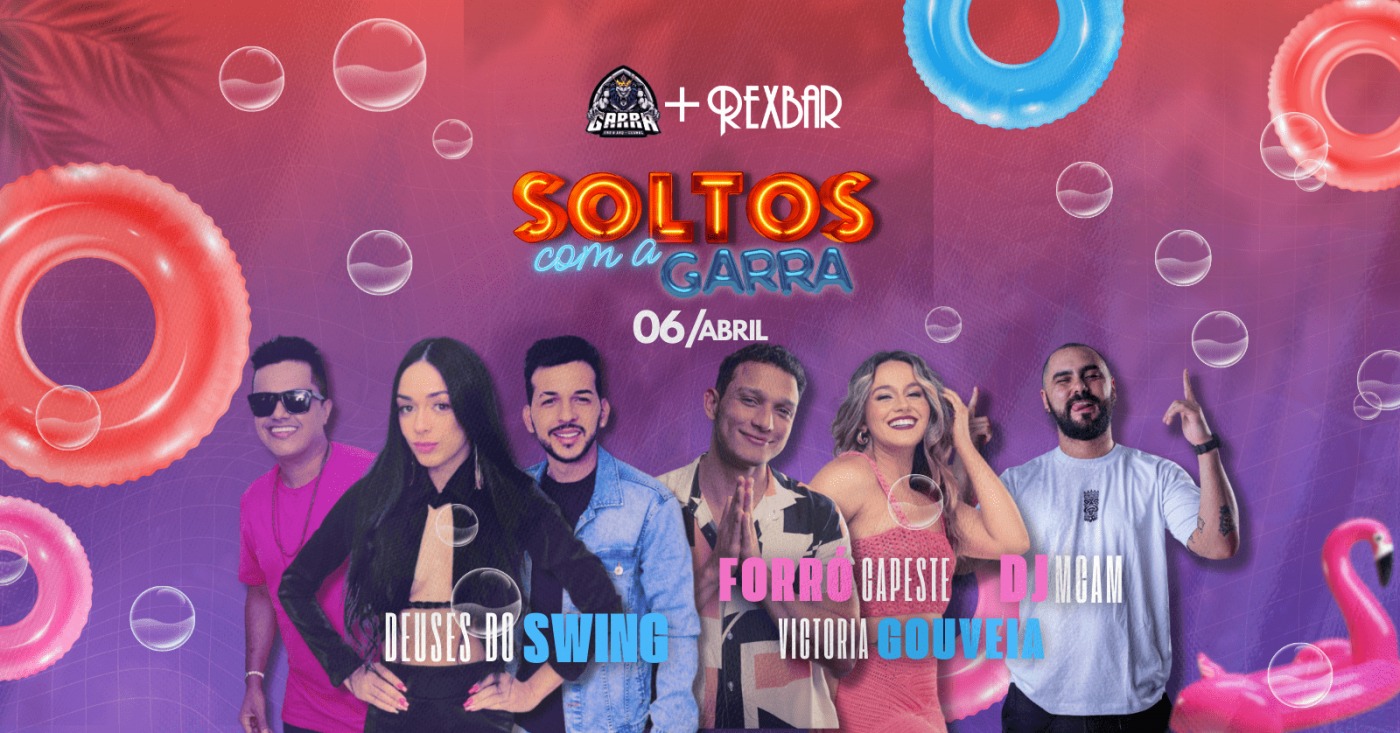 Já quem curte pagode e swing, pode aproveitar a primeira edição da Soltos com a Garra, lá no Rex Bar. O evento começa às 21h e conta com apresentação de Victoria Gouveia e Deuses do Swing.