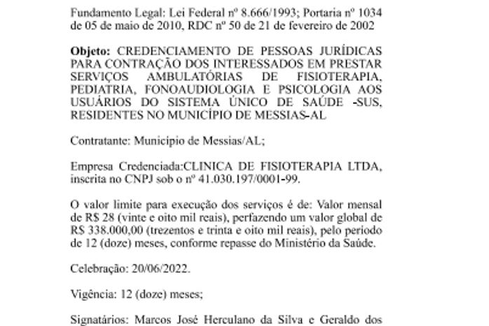 O referido contrato estipula um pagamento mensal de até R$ 28.000,00, totalizando R$ 336.000,00 anuais, o que significa que, de maio de 2021 aos dias atuais, os cofres públicos do munícipio de Messias destinaram em torno de R$1 milhão para a clínica do vereador.