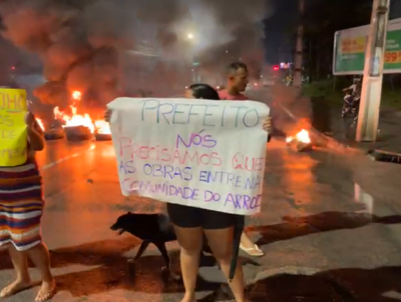 Um grupo de moradores da Grota do Arroz, no bairro da Mangabeiras, em Maceió, fecharam um trecho da Avenida Comendador Gustavo Paiva para protestar contra a falta de infraestrutura da Grota em que moram.