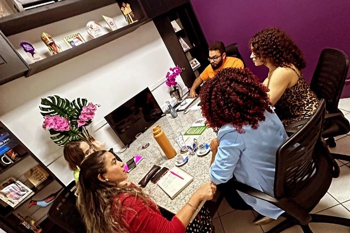 E para alinhar pontos, sobre o PL, a secretaria executiva, Bruna Tenório, a coordenadora geral da igualdade racial, Arisia Barros, acompanhada da Laura e Mariana estiveram em reunião, com Eduardo, assessor da vereadora, Olívia Tenório.