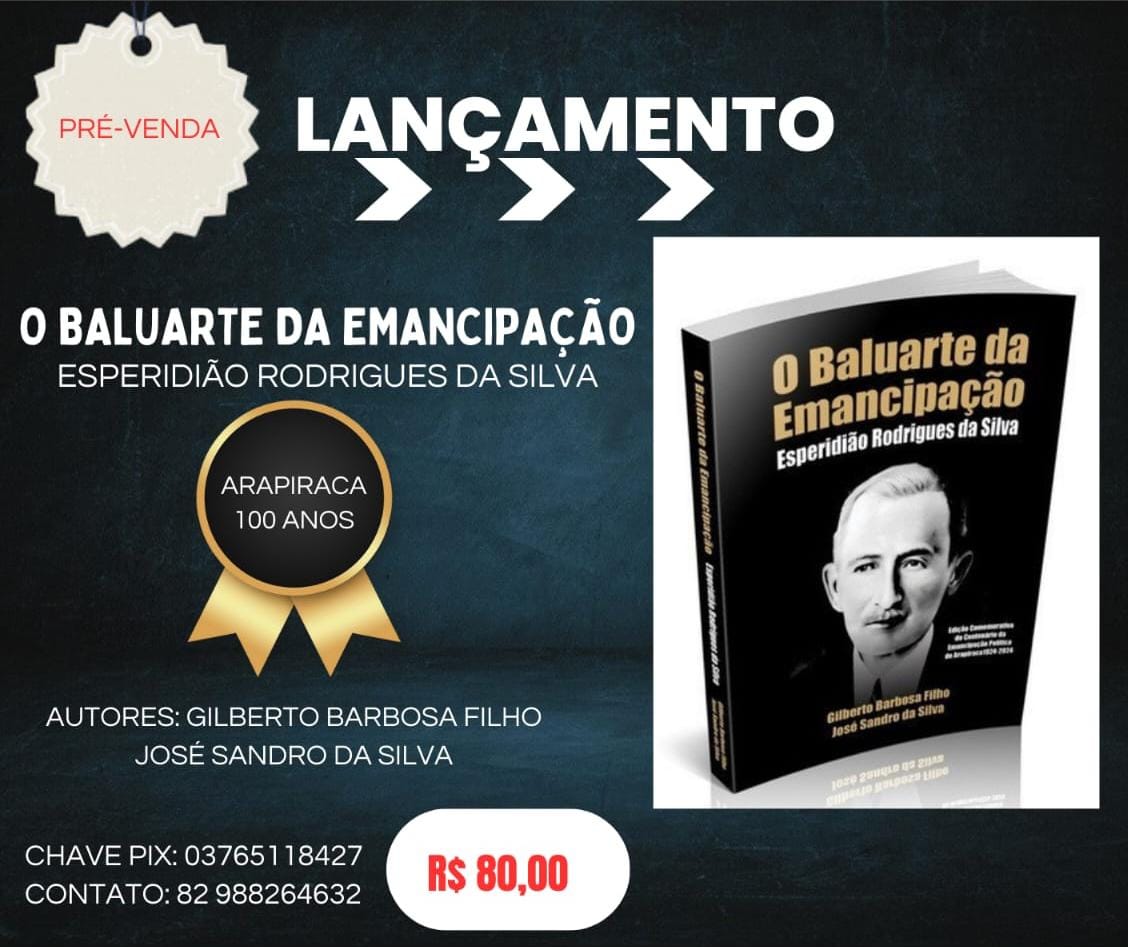 O Livro Esperidião Rodrigues - O Baluarte da Emancipação, dos historiadores Gilberto Barbosa Filho e José Sandro da Silva, será lançado neste dia 31 de Maio de 2024, quando se completa o primeiro Centenário do telegrama do Governador Fernandes Lima, informando a Esperidião Rodrigues, líder da campanha da emancipação política de Arapiraca!