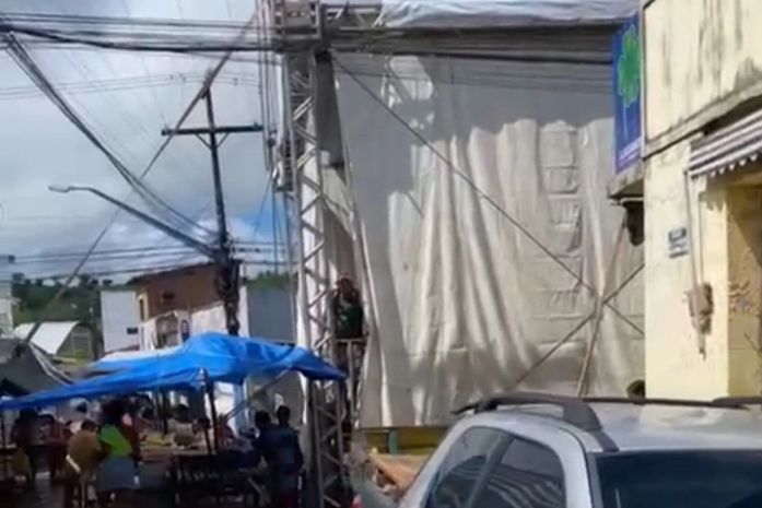 “A rua do comércio e também da Câmara dos Vereadores está parcialmente fechada com uma estrutura de palco para um evento”, relatou um dos moradores ao Cada Minuto.