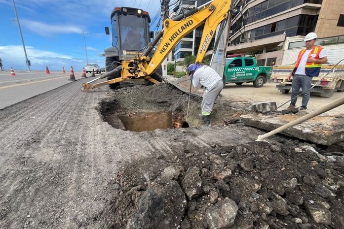 O trecho que está interditado fica próximo à entrada da Avenida Doutor Antônio Gomes de Barros, sentido Ponta Verde. Para o fluxo de trânsito, o Departamento Municipal de Transporte e Trânsito (DMTT) sinalizou a área, orientando os condutores a trafegar em uma faixa em cada sentido.