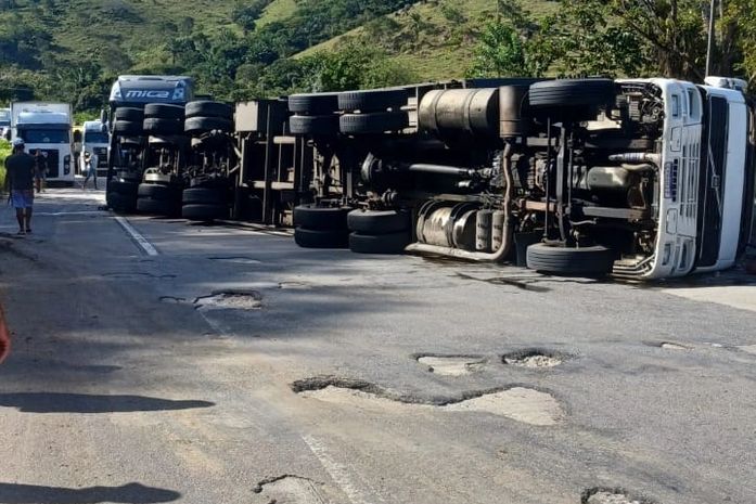 De acordo com informações da Polícia Rodoviária Federal (PRF, o motorista perdeu o controle da direção e a carreta, que transportava garrafas pets e garrafas de vidro, acabou tombado. O condutor sofreu escoriações leves.