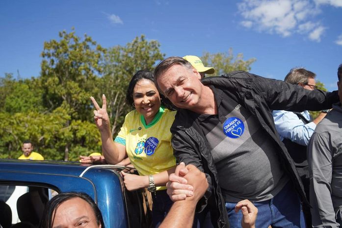 A senhora na carreata ao lado de Bolsonaro, na imagem acima, é a deputada estadual do Tocantins Janad Valcari. Ela é a candidata do PL à prefeitura de Palmas, com o apoio da fina flor da ultradireita. Ela também foi empresária de shows e, nessa condição, se meteu em escândalos com a banda Barões da Pisadinha. Segundo reportagem do portal DCM, a bolsonarista teria recebido 23 milhões de reais em contratos exóticos entre a banda e municípios tocantinenses. Ela foi à Justiça contra o veículo de notícia.