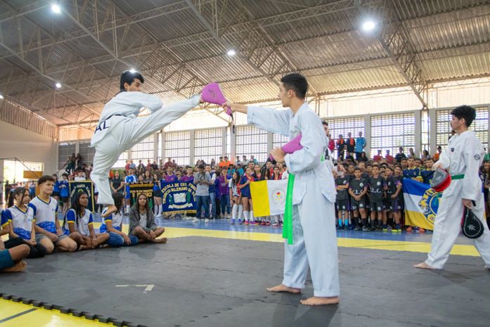 Com a presença de centenas de alunos e alunas das redes pública e privada de Ensino, o Ginásio de Esportes do Centro de Apoio às Escolas em Tempo Integral I (Caeti-I) foi tomado pela euforia dos atletas que irão competir durante 25 dias em diversas praças esportivas do município.