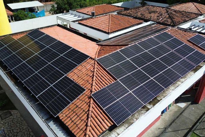 A instalação de energia solar nos CMEIs da SEMED é feita com recursos próprios do município, investimento orçado em aproximadamente setecentos mil reais (R$ 699.959,91).