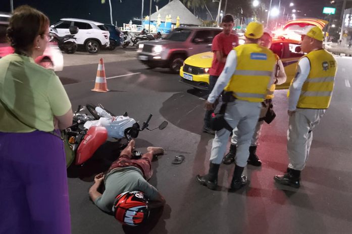 Um motociclista, de 32 anos, ficou ferido após colidir com um carro, na noite do último sábado (21), na Avenida Álvaro Otacílio, na Jatiúca, parte baixa de Maceió.