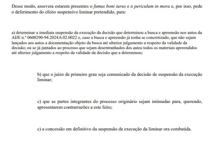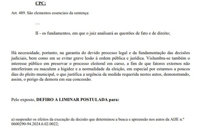 Na decisão, o desembargador destacou a importância de garantir o devido processo legal e a fundamentação das decisões judiciais, especialmente em um contexto eleitoral. A liminar suspende os efeitos da decisão anterior e impede que os documentos apreendidos sejam utilizados até que haja uma análise mais aprofundada sobre o caso.