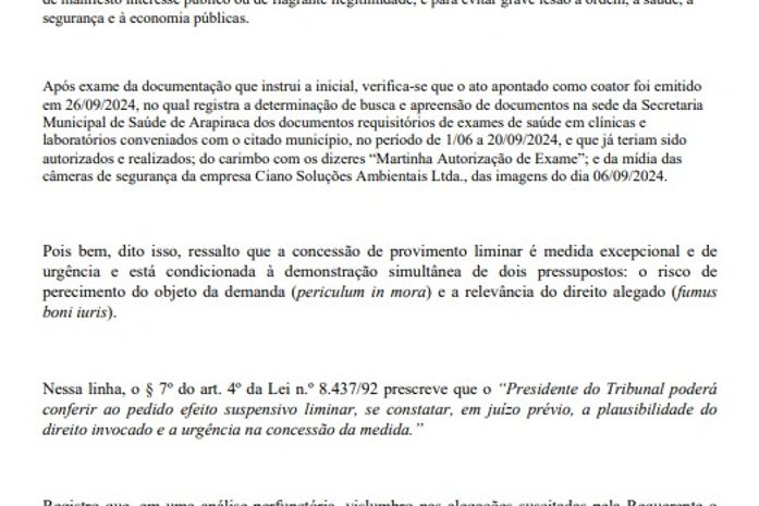 A Justiça Eleitoral de Alagoas concedeu uma liminar suspendendo a decisão que autorizava a busca e apreensão de documentos na Secretaria Municipal de Saúde de Arapiraca. A medida havia sido solicitada em uma ação de investigação judicial eleitoral contra a coligação Arapiraca 100 Anos, Juntos Vamos Fazer Muito Mais, que tem Luciano Barbosa como candidato à reeleição.