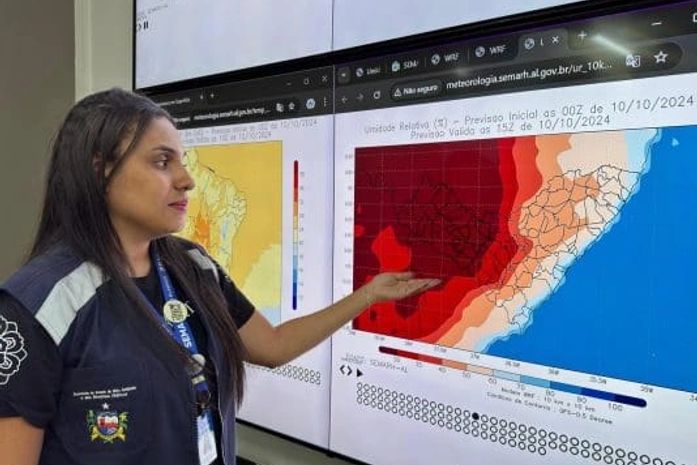 A Secretaria de Estado do Meio Ambiente e dos Recursos Hídricos de Alagoas (Semarh) atualizou o aviso meteorológico, informando sobre a continuidade de condições de baixa umidade do ar nas regiões do Sertão, Sertão do São Francisco e Agreste. Segundo a nova previsão, a umidade relativa do ar pode permanecer abaixo de 30% até sábado (12), com maior impacto entre 10h e 16h, período de mais calor.