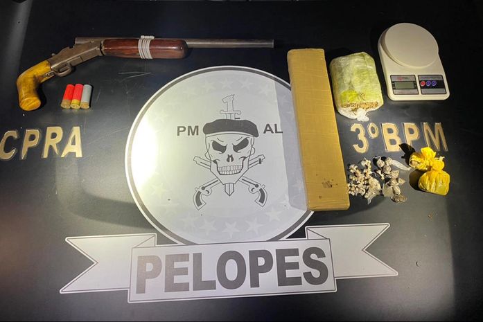 Na residência do suspeito, ainda, foram apreendidas 72 pedras de crack, 1,330 kg de maconha em tabletes, 60g de maconha em pequenas porções, três munições de calibre 12, uma espingarda calibre 12, uma balança e duas motocicletas, uma delas com sinais identificadores adulterados.