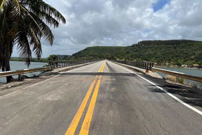 O Departamento de Estradas de Rodagem (DER) solucionou, na manhã desta sexta-feira, uma fuga de material que resultou em um buraco na cabeceira da ponte sobre o Rio São Miguel, na rodovia AL-101-Sul, em Roteiro.
