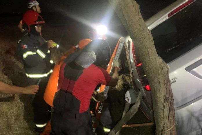 Nas imagens, é possível observar que a dianteira do Fiesta ficou completamente destruída. Além disso, os militares enfrentaram dificuldades para realizar o resgate da vítima, que, devido à posição em que o veículo caiu, estava próxima ao chão, complicando a operação.